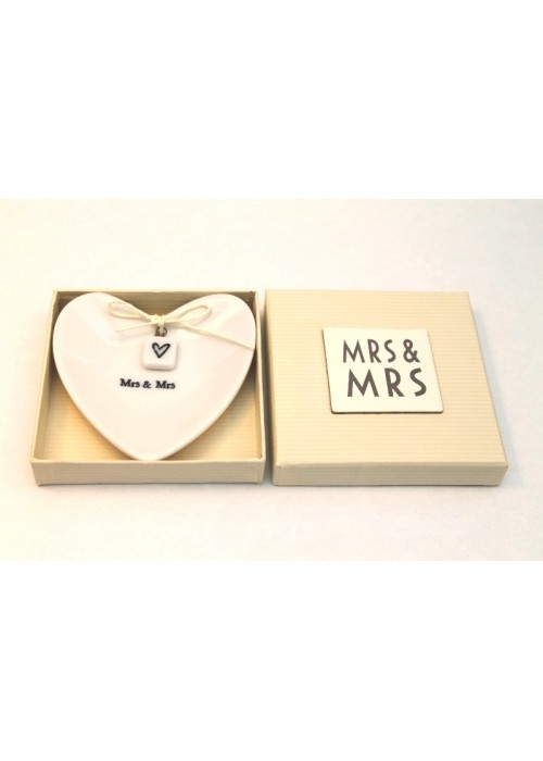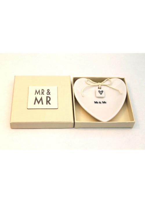 This beautiful East of India Heart Ring Dish is available in three designs: MR & MRS, MR & MR and MRS & MRS.